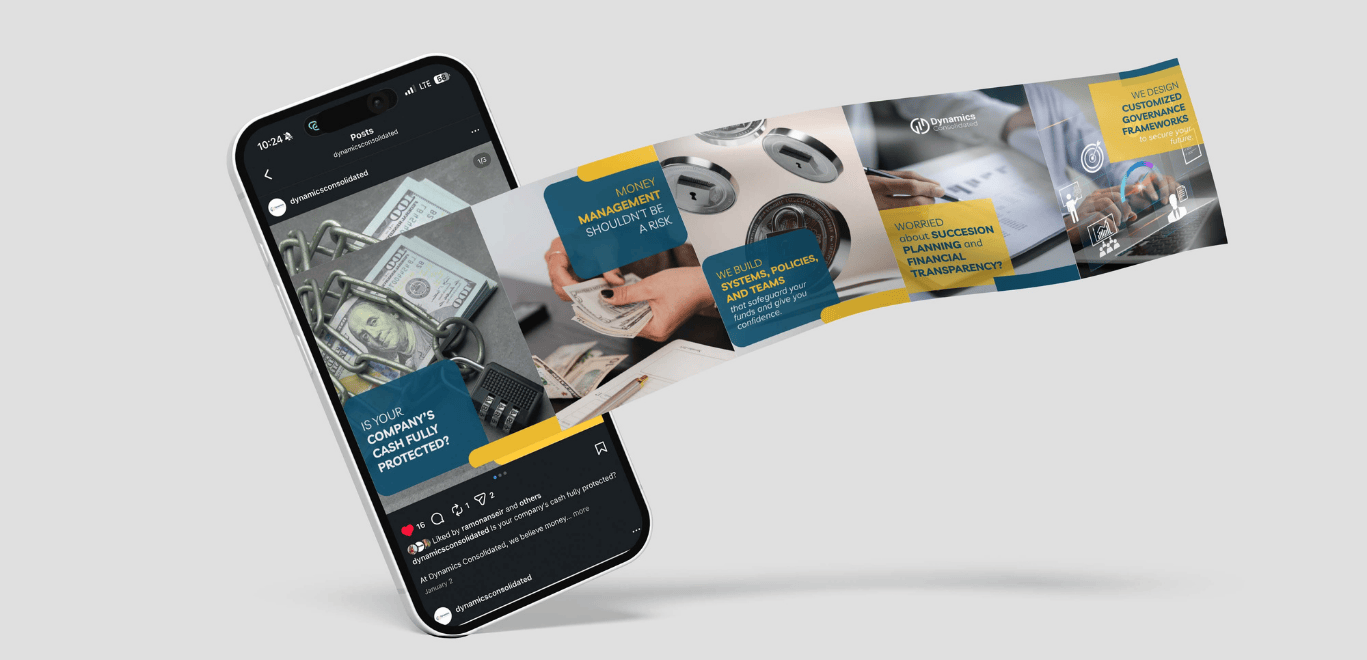 Dynamics Consolidated is a financial consultation firm focused on providing strategic guidance, clarity, and data-driven solutions for businesses and individuals. The goal of this collaboration was to build a strong and credible digital presence through professional social media content that reflects trust, expertise, and financial reliability.