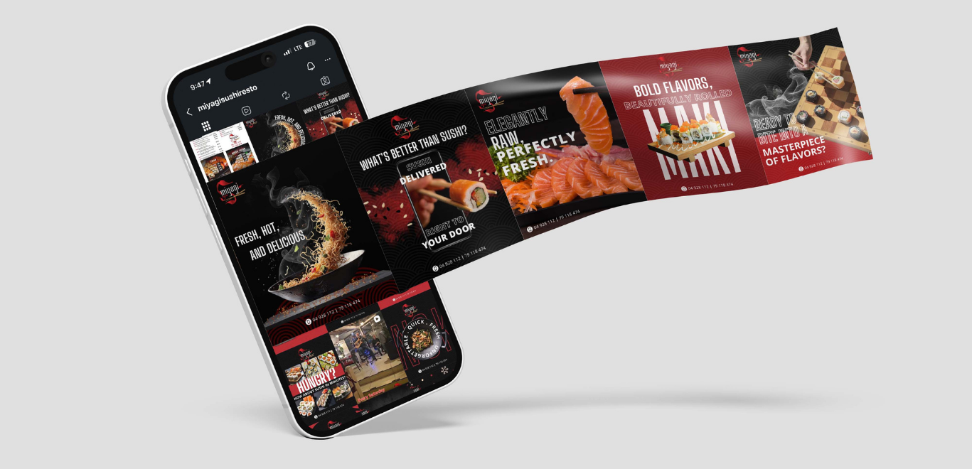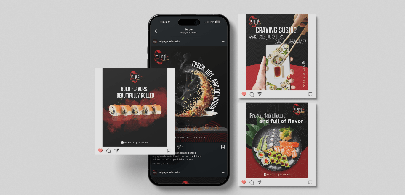 Miyagi Sushi is a sushi restaurant focused on delivering a modern dining experience with a strong emphasis on quality and presentation. The objective of the project was to support the brand’s digital presence through visually appealing social media content that reflects the restaurant’s identity and showcases its menu in an engaging way.